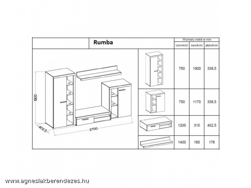 Modern fix összeállítású nappali szekrénysor. Tv elem befordítható, így sarokban is állítható.