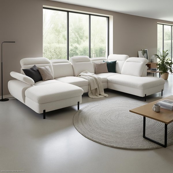 Hullámrugós U alakú sarokgarnitúra hatalmas vendégággyal és két ágyneműtartóval. Fekvőfelület: 160 x 290 cm Terhelhetőség: max 100kg/fő