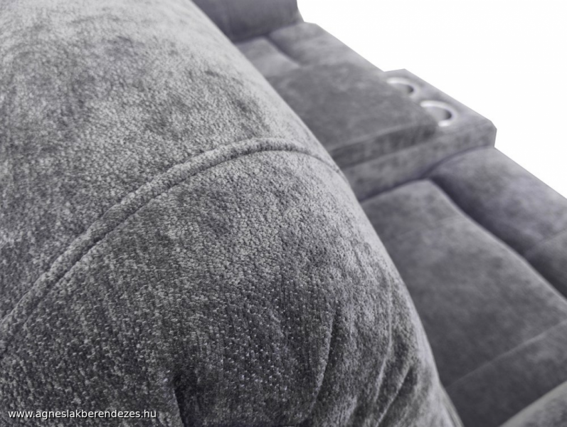 Jellemzők: hullámrugós, állítható fejtámlával, állítható kartámlával, ágyneműtartóval, ágy funkcióval, díszvarrással. Szürke színben rendelhető.