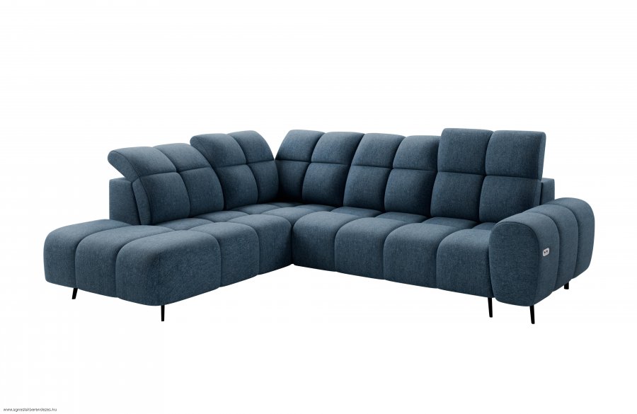 Hullámrugós sarokgarnitúra, elektromosan állítható ülésmélységgel, állítható fejtámlával. Szövetminta alapján jobbos vagy balos kivitelben rendelhető.