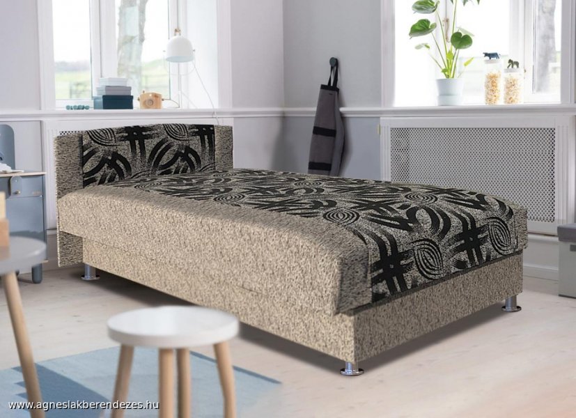 Bonellrugós kárpitozott heverő nagy ágyneműtartóval. A fejvég tetszőlegesen rögzíthető bármelyik oldalra. Igény esetén oldaltámlával is rendelhető. Az ágyfémlábbal van szerelve.