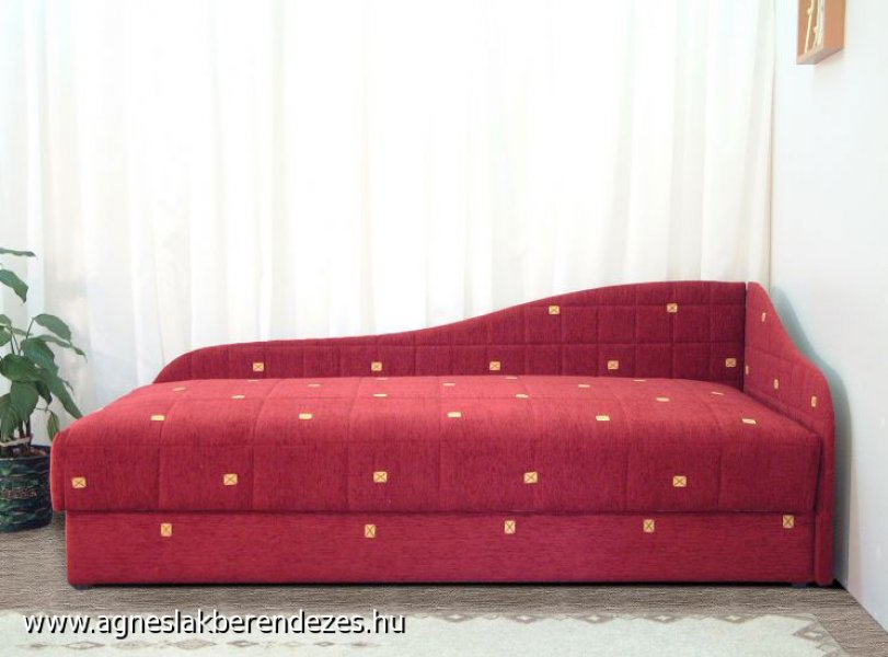 Hagyományosan kárpitozott fekvő bútor, mely 90 cm széles bonell rugózattal ellátott fekvőfelülettel készül. A felületek steppeltek, mely egyedivé teszik a terméket, valamint megakadályozzák a bevonó anyag nyúlását. » A fejvég formája katalógusból választható. » Az oldalról nyíló ágyneműtartót rugós vasalat működteti. » Igény szerint a fejvég külső oldalát is kárpitozzuk. Fekvőfelület magassága: 43 cm