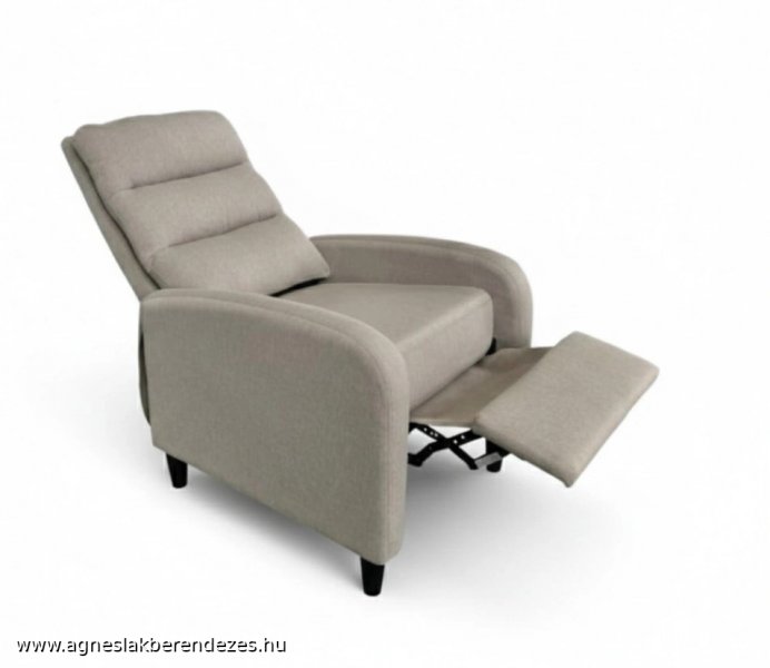 Modern letisztult formájú relax fotel, könnyed működtetésű push-back technikával működik:egyszerűen hátradőlve aktiválódik a lábtartó és a dönthető háttámla. Szürke és bézs színben rendelhető a készlet erejéig.