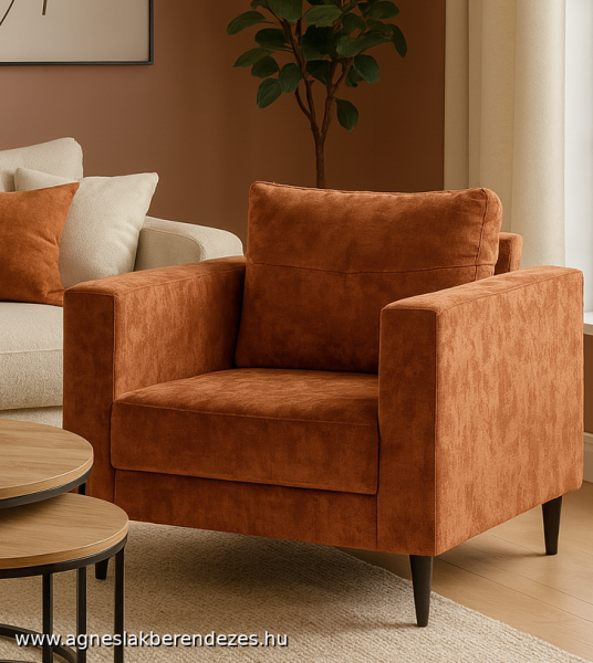 Letisztult formavezetésű kényelmes fotel hullámrugós ülőfelülettel.
