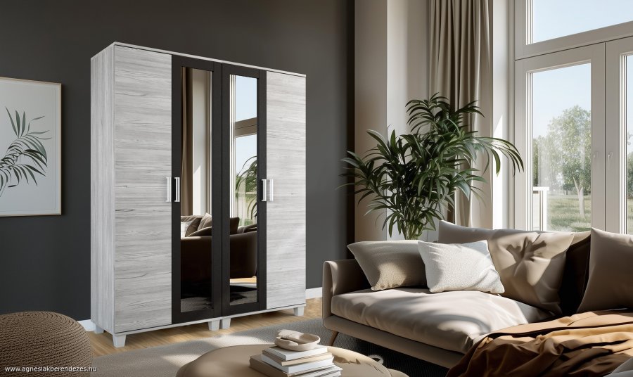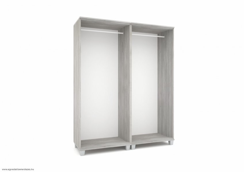 160, 180 és 200 cm-es kivitelben kapható, 16 bútorlapszín közül választhatnak kedvükre. A tolóajtónak köszönhetően a tér maximális kihasználását is lehetővé teszi. Belső elrendezése bővíthető polcokkal, fiókkonténerekkel, mándlirudakkal. Az ajtó szín külön választható. Alap variáció: egy tükör betét, illetve egy festett üveg betét, de kérhető kettő tükör betéttel, illetve kettő festett üveg betéttel is.