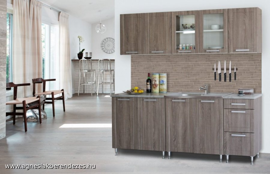 Kedvező árfekvésű blokk konyha. Rendelhető sonoma tölgy,san remo tölgy, trüffel, barna tölgy, matt fehér, avola krém, százéves tölgy, bézs, calvados fronttal. Artisan tölgy, barna tölgy, matt fehér, fekete fenyő, sonoma tölgy, trüffel, calvados korpusszal. Választható 28mm-es munkalappal. 60 vagy 72 cm magas felső elemekkel, egy vagy két medencés mosogatótálcával, állítható műanyag lábakkal. További elemekkel kiegészíthető. Az ár ezek függvényében változhat.