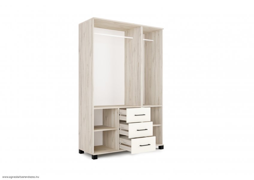 -18 mm laminált forgácslap -süllyesztett fejű forgácslap csavarral összeállítva -3 mm HDF hátlemez tűzőkapoccsal rögzítve -polctartó furatokkal ellátva -fém polctartók -ABS élzárás -fém fiókcsúszka -állítható lábak