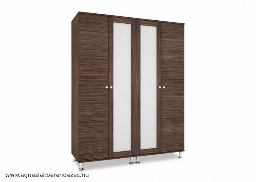 Modern szekrénysor klasszikus elrendezéssel, két akasztós és sok tárolós elemmel. Szín: Sötét justus tölgy-világos justus tölgy.
