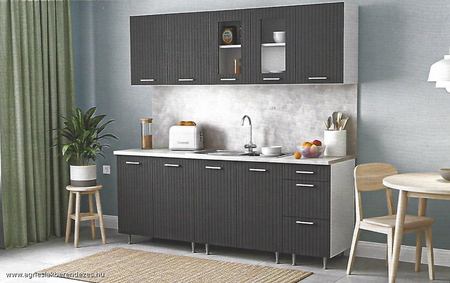 Kedvező árfekvésű blokk konyha. Rendelhető matt fehér és matt szürke fronttal. Artisan tölgy, barna tölgy, matt fehér, fekete fenyő, sonoma tölgy, trüffel, calvados korpusszal. Választható 28mm-es munkalappal. 60 vagy 72 cm magas felső elemekkel, egy vagy két medencés mosogatótálcával, állítható műanyag lábakkal. További elemekkel kiegészíthető. Az ár ezek függvényében változhat.